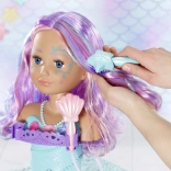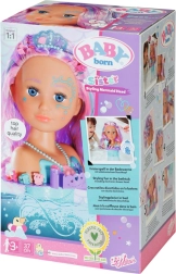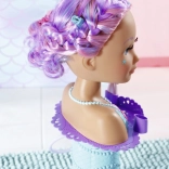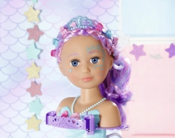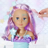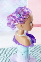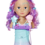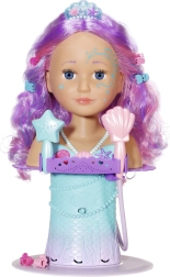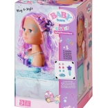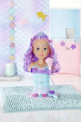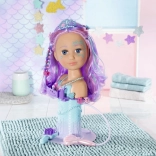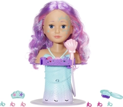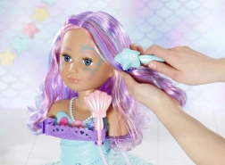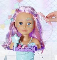 Česacia hlava BABY born Sister Morská víla premení každý kúpeľ na podmorský kadernícky salón. Prisaje sa k vani pomocou pevných prísaviek a po vybratí mušľovej sprchovej hlavice sa aktivuje čerpadlo – voda skutočne tečie, pokiaľ je hlava vo vode. Ľahko otočná hlava s maľovanými detailmi tváre láka k líčeniu a hrám na kozmetický salón.
