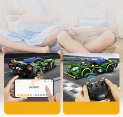 Model ponúka Dual Mode ovládanie: klasickým 2,4 GHz ovládačom alebo cez Bluetooth aplikáciu so štyrmi režimami (remote, scratch programming, gyroscope, path). Vďaka gumeným kolesám zvláda rôzne povrchy, má rýchlosť až 3,8 km/h a stabilný dosah viac ako 25 metrov. Hotové vozidlo vyniká zelenou karosériou s čiernymi prvkami a po zostavení meria 16 × 29 × 7 cm.