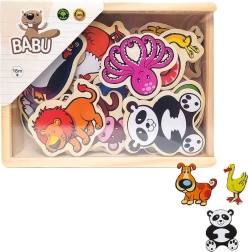 Drevené magnetky Zvieratá sú ideálnou vzdelávacou hračkou pre deti. Táto sada obsahuje 20 farebne rozmanitých magnetiek, ktoré pomáhajú rozvíjať jemnú motoriku a poznávanie zvierat.
