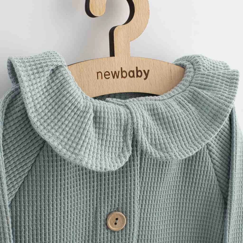 Štýlový kabátik New Baby Laura ľahko nahradí svetrík v šatníku každej malej slečny. Vďaka kvalitnej bavlne sa príjemne nosí, nedráždi citlivú pokožku a výborne drží tvar. Drevené gombíky a golierik dodávajú modelu jemne slávnostný nádych, no zároveň zostáva praktický na každodenné používanie.