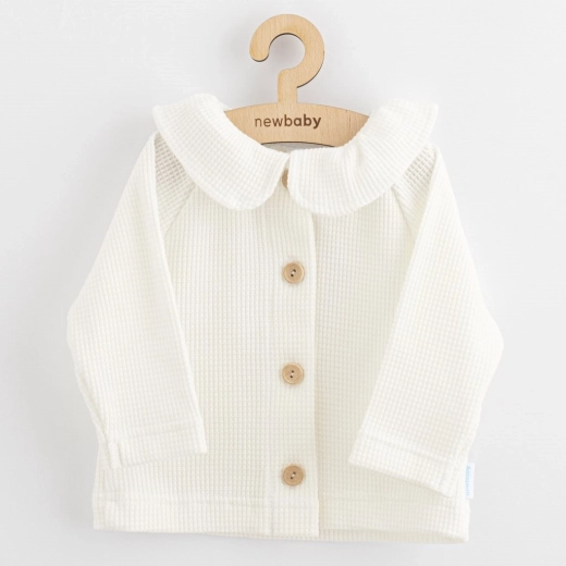 Dojčenský kabátik New Baby Laura kombinuje pohodlie, funkčnosť a jemnú eleganciu. Vďaka kvalitnému bavlnenému úpletu je príjemný na dotyk, priedušný a vhodný na každodenné nosenie aj špeciálne príležitosti. Štýlový golierik a drevené gombíky dodávajú kabátiku nadčasový vzhľad, ktorý ľahko nahradí klasický svetrík vo výbavičke.