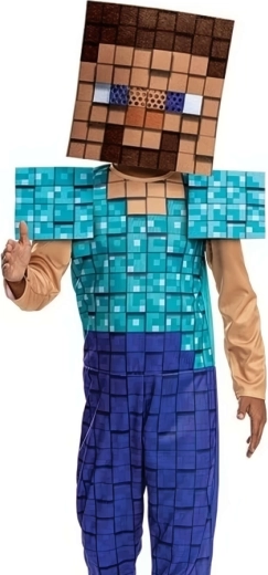Tento licencovaný kostým Minecraft Steve premení vaše dieťa na najobľúbenejšiu postavu z ikonickej kockovej hry. Kostým tvorí jednodielna kombinéza s potlačou tyrkysového brnenia a modrých nohavíc a kocková maska hlavy pre efekt 8-bitového hrdinu. Skvelé na školský karneval, detské oslavy aj tematické fotenie.