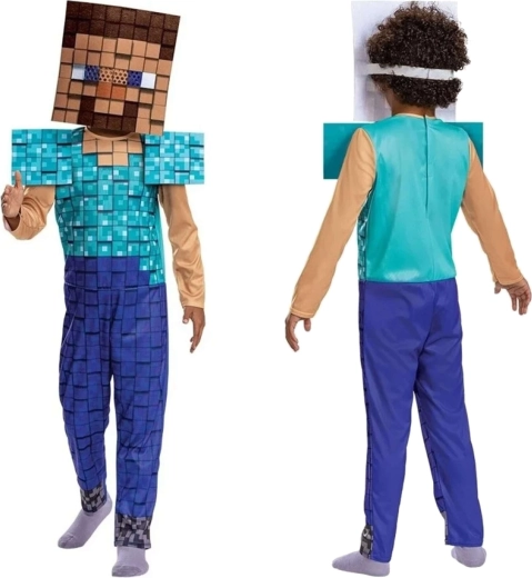 Súčasťou je jednodielny overal a veľká kocková maska hlavy, vďaka ktorej sa dieťa premení na skutočného Stevea.