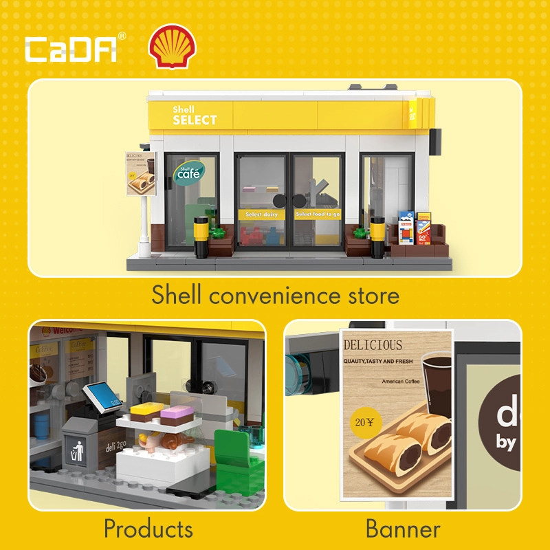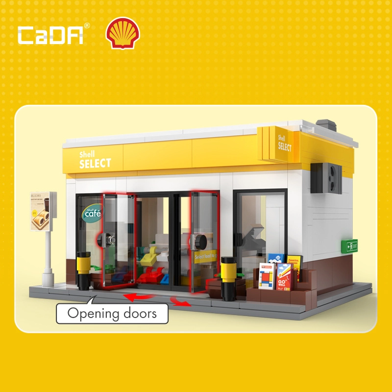 Stavebnica CaDA prináša detailne spracovaný jednopodlažný mini obchod SHELL s realistickými prvkami, ako sú posuvné/otváracie dvere, vitríny, plagáty a vybavenie interiéru. Ideálne pre deti od 8 rokov aj dospelých fanúšikov stavebníc, ktorí milujú presnosť a štýlový display model.
