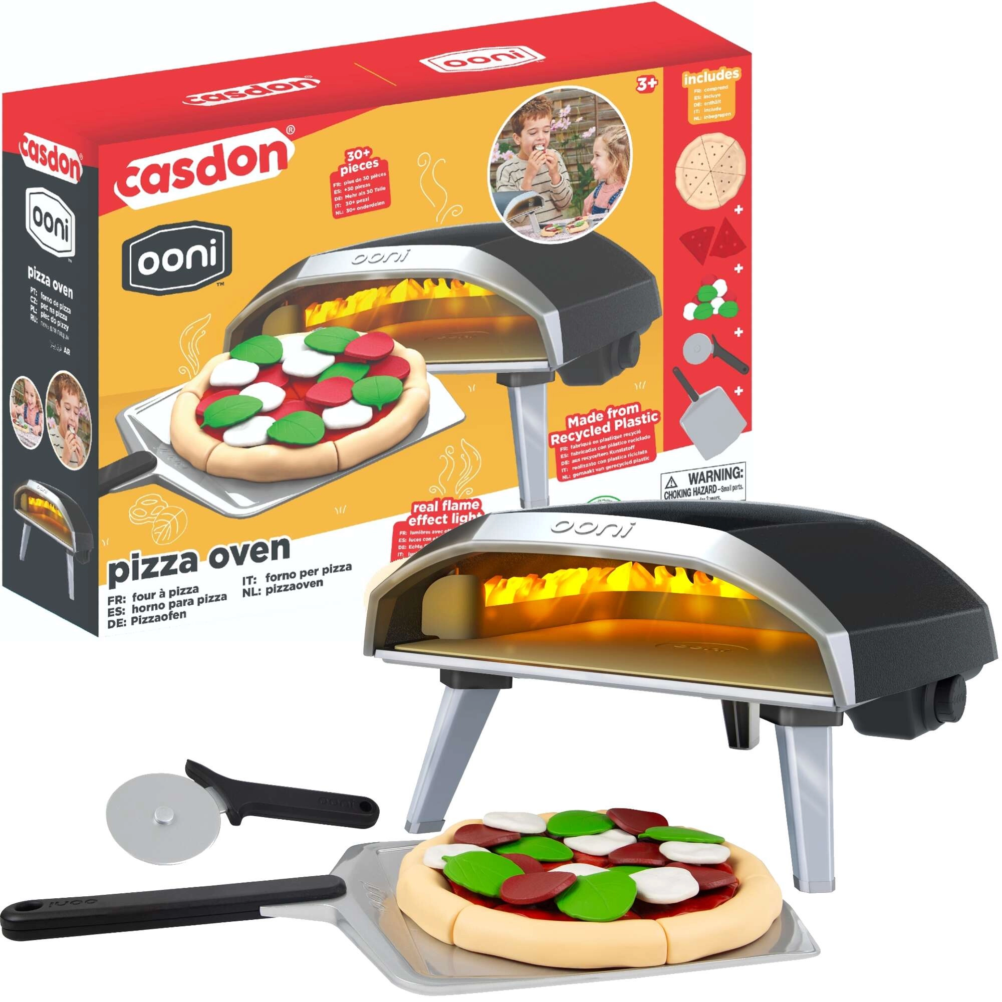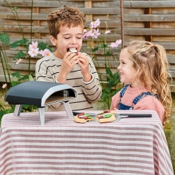 Štýlová detská pizza pec v modernom čierno–striebornom dizajne prináša autentický zážitok z prípravy pizze priamo na stole. Deti pizzu poskladajú zo 6 dielikov cesta a „omáčky“, ozdobia ju 18 doplnkami a pomocou lopatky ju zasunú do pece. Každý kúsok drží vďaka praktickým spojom, takže sa s pizzou pohodlne manipuluje a zábava plynie prirodzene.