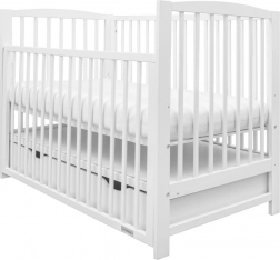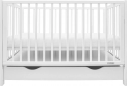 Drevená detská postieľka New Baby Lilly v bielej farbe ponúka bezpečný spánok, spúšťaciu bočnicu pre ľahký prístup jednou rukou a praktický šuplík na uloženie výbavičky. Je vyrobená z kvalitného borovicového dreva s certifikáciou FSC, má 3 výškové polohy roštu a spĺňa normy EN 716-1 a EN 716-2 pre maximálnu bezpečnosť.