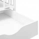 Vstavaná zásuvka poskytuje dostatok miesta na uloženie posteľnej bielizne a potrieb pre bábätko. Je hladko výsuvná a nedotýka sa podlahy.