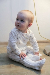 Praktické detaily uľahčia každodennú starostlivosť: zapínanie na cvoky na pleci a medzi nožičkami umožňuje rýchle obliekanie a prebaľovanie bez zbytočného stresu. Dlhé rukávy udržia bábätko v teple po celý deň.