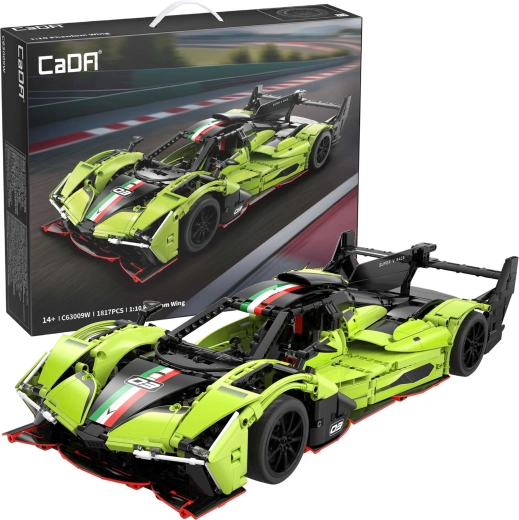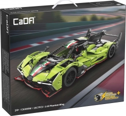 Model CaDA PHANTOM WING prináša intenzívny zážitok zo stavby aj vystavenia. Aerodynamická zelená karoséria, premyslené detaily interiéru a funkčné prvky – od riadenia po odpruženie – vytvárajú autentický vzhľad aj pohyb pretekárskeho vozidla. Po zostavení meria auto približne 54 × 13,5 cm, čo z neho robí pôsobivý kúsok do vitríny aj na hranie.