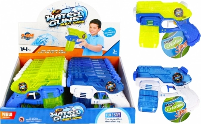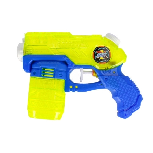 Táto farebná vodná pištoľ zaujme priesvitným telom, ergonomickou rukoväťou a spoľahlivou spúšťou. Vďaka kompaktným rozmerom 17 × 12 × 4 cm ju deti ľahko uchopia aj ovládajú. Vybrať si môžete z dvoch štýlových variantov s modro-bielymi a neónovo žltými prvkami.