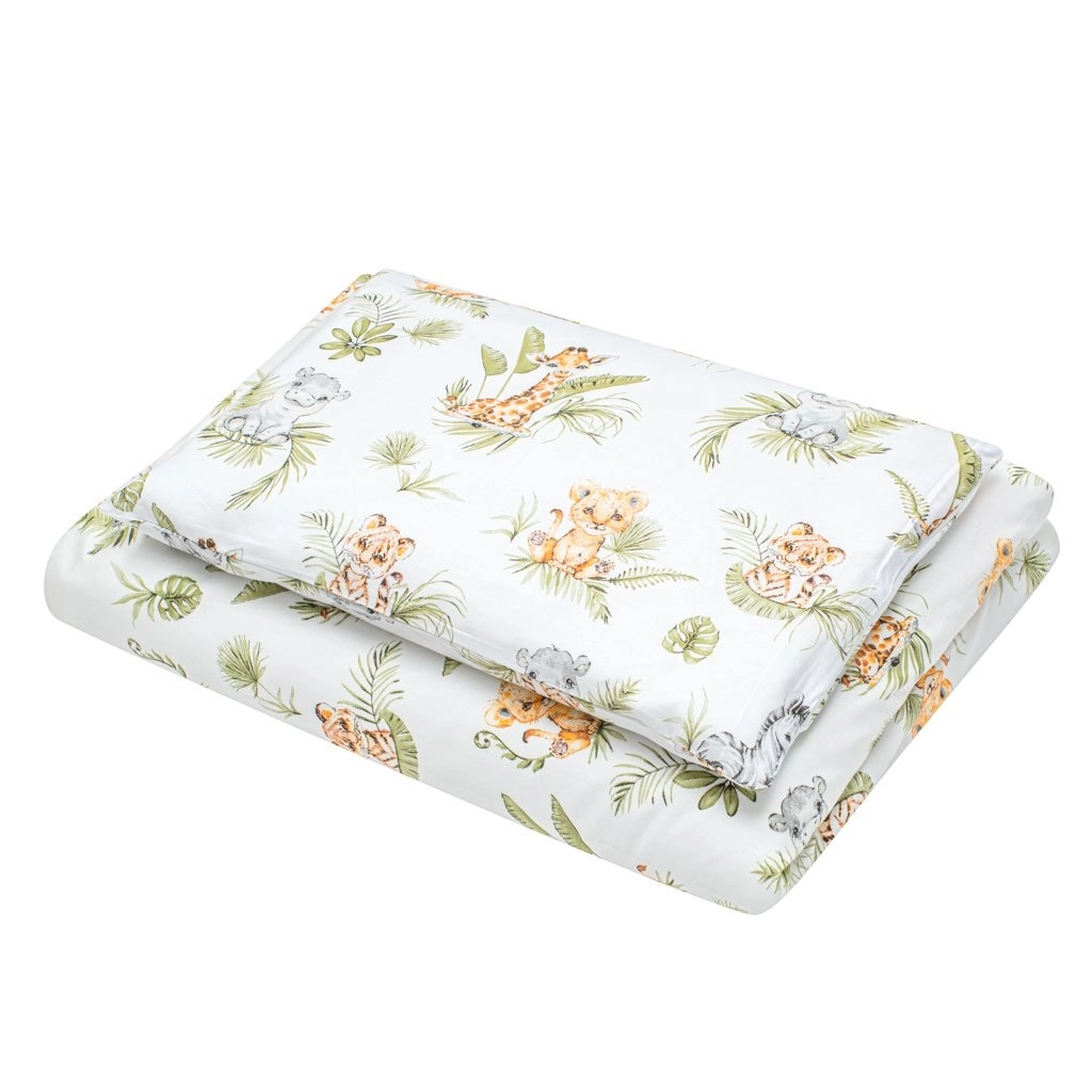 Doprajte svojmu bábätku pohodlie a bezpečie s 3-dielnou sadou do postieľky NEW BABY Jungle. Obliečky sú ušité zo 100% prírodnej bavlny, ktorá je mäkká na dotyk, priedušná a šetrná k citlivej detskej pokožke. Dizajn s upokojujúcimi farbami a motívom džungle vytvára príjemné prostredie na spánok aj oddych.