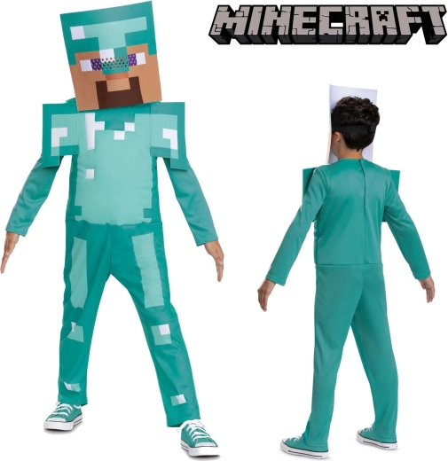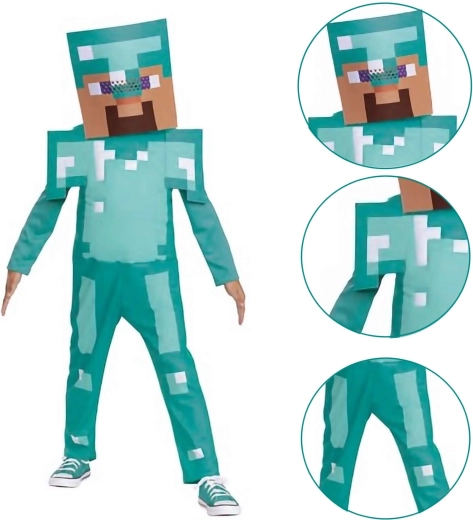 Súčasťou je krabicová prilba/maska, ktorá dotvára herný vzhľad postavy Steve. Overal s dlhým rukávom a nohavicami má polstrované ramenné panely a pôsobivé pixelové detaily pre maximálny efekt na každej párty.