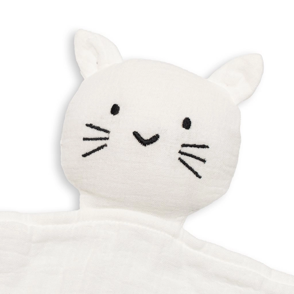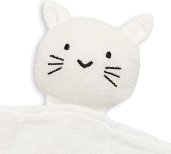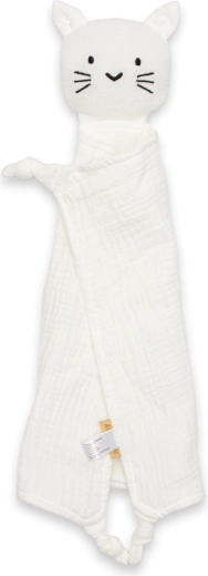 Mušelínový usínáčik NEW BABY Cat v bielej farbe je ľahký, priedušný a príjemný na dotyk. Ideálny na maznanie, upokojenie aj ako spoločník na cesty. Organická bavlna je šetrná k citlivej detskej pokožke a pomáha bábätku cítiť sa v bezpečí.