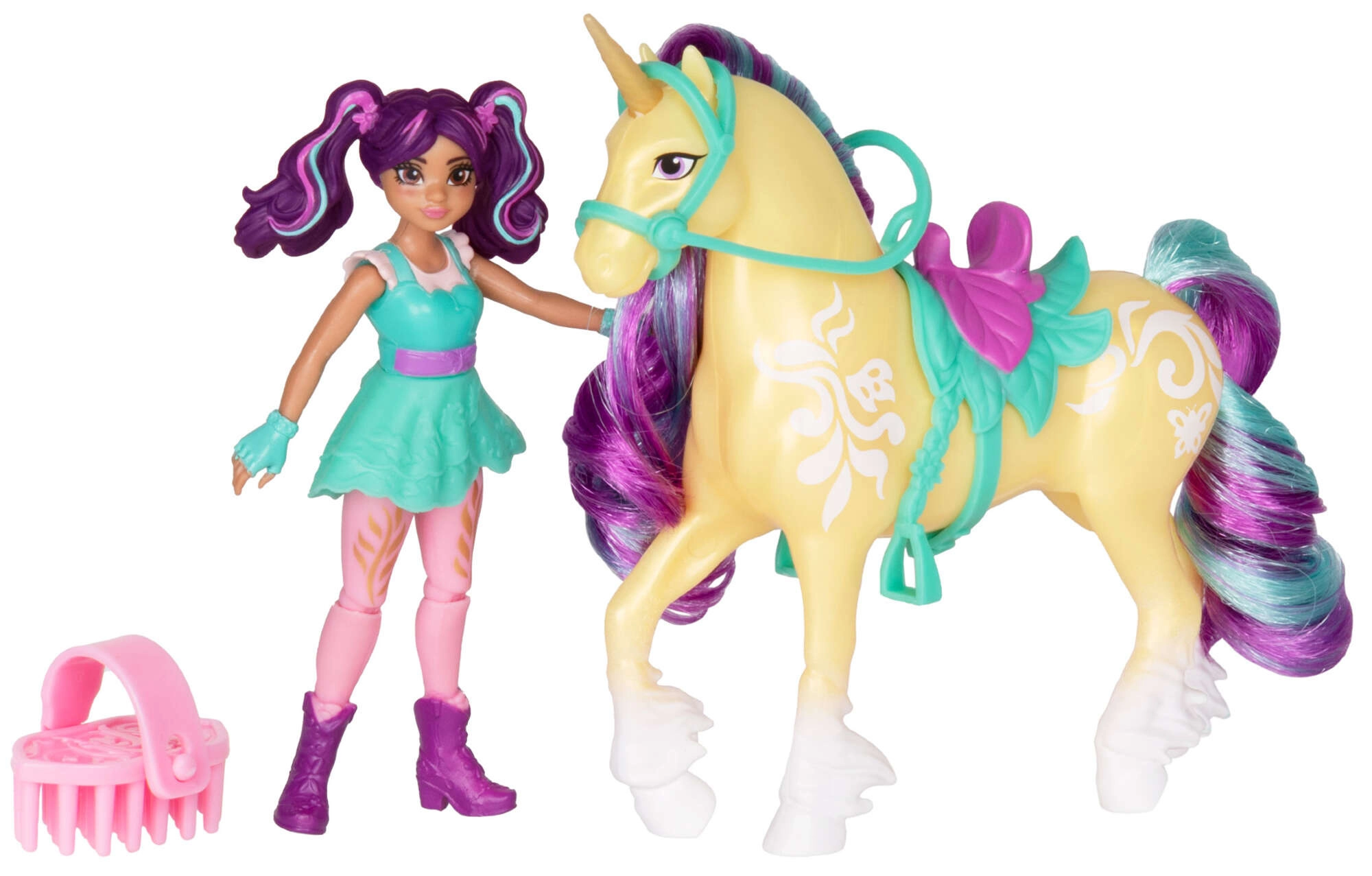 Súčasťou je kefa, s ktorou môžu deti hrivu aj chvost upravovať a vytvárať nové štýly. Sada je perfektná na samostatnú aj spoločnú hru, rozširuje slovnú zásobu, podporuje imaginatívne príbehy a skvele doplní zbierku figúrok UNICORN ACADEMY.