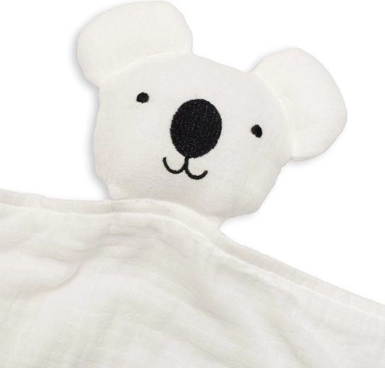 Mojkáčik NEW BABY Koala z jemného mušelínu je skvelým spoločníkom do postieľky aj do kočíka. Vďaka mäkkému materiálu je príjemný na dotyk, nedráždi citlivú detskú pokožku a pomáha navodiť pokoj pri zaspávaní. Štýlový, minimalistický vzhľad ľahko zladíte s ďalšími mušelínovými doplnkami.