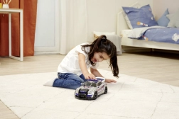 Vďaka pevnej plastovej karosérii a veľkým kolesám je auto stabilné a pripravené na každodenné hranie v interiéri. Ideálne ako darček pre malých milovníkov akcie a rýchlej jazdy.