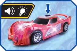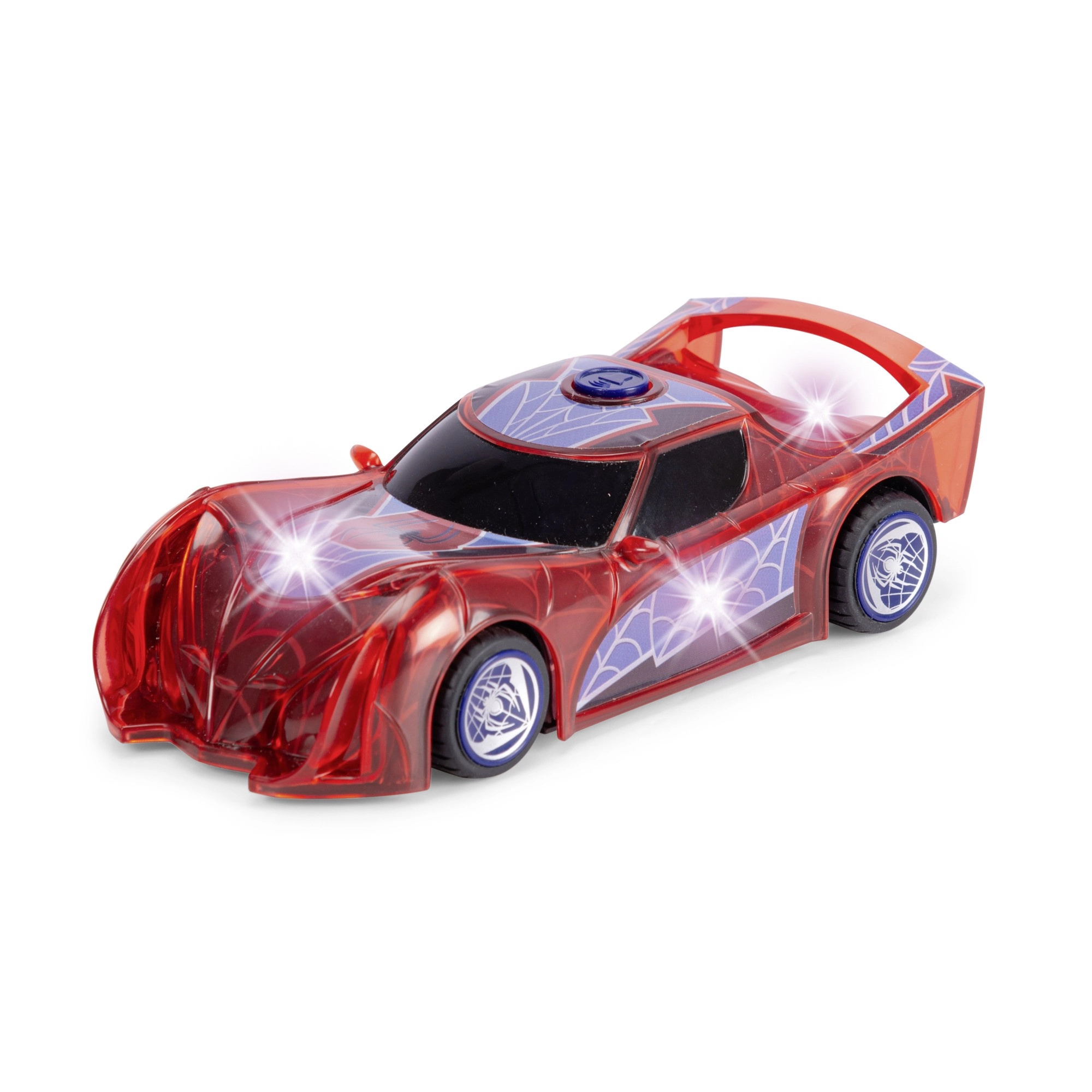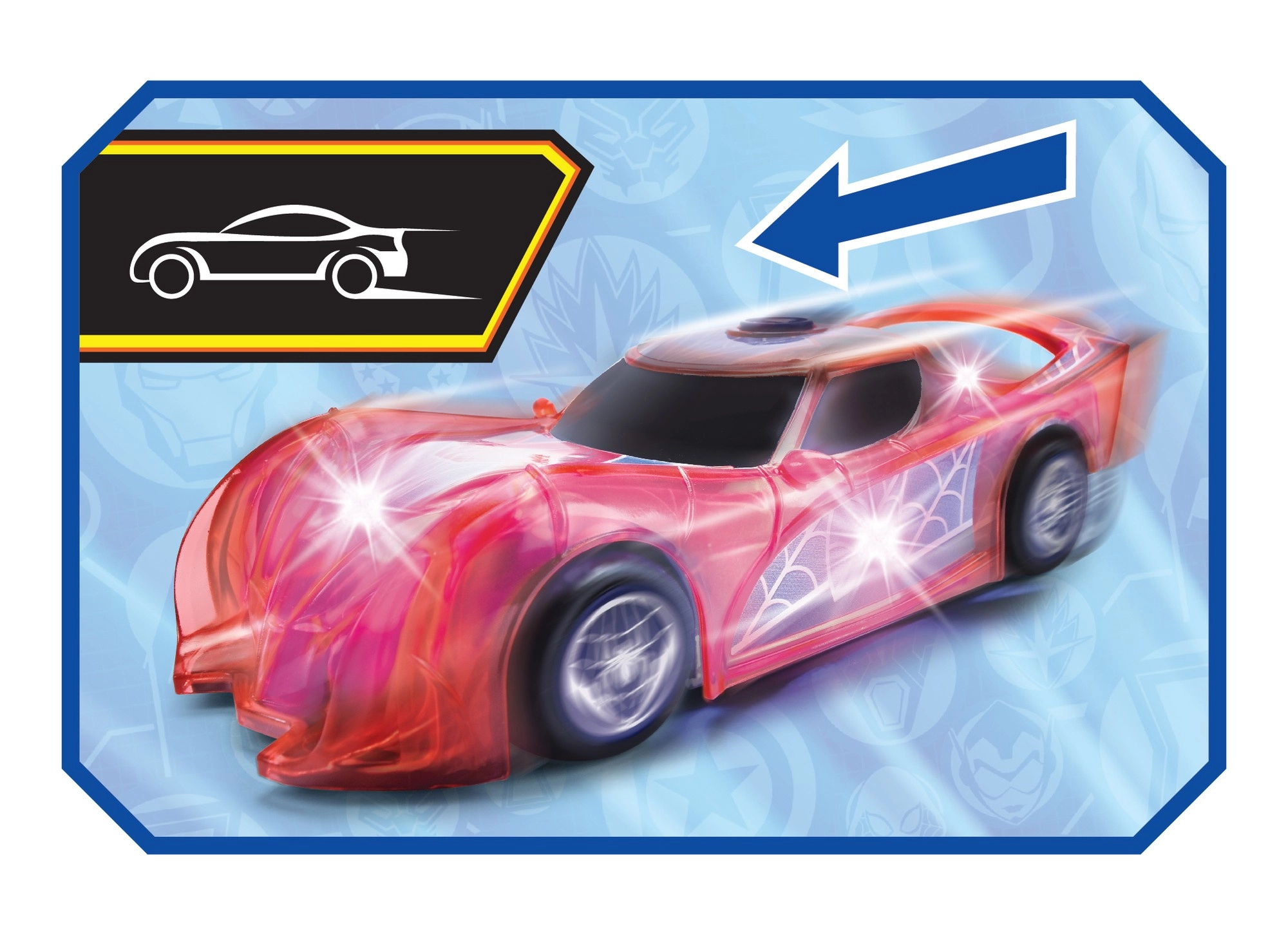 Superhrdinské auto SPIDER‑MAN v charakteristickej červenej farbe a s pavučinovými detailmi vyniká priesvitným dizajnom a vstavanými LED svetlami, ktoré rozžiaria každé dobrodružstvo. Jednoduchý push‑and‑go mechanizmus (frikčný pohon) stačí ľahko postrčiť a auto vyrazí vpred.