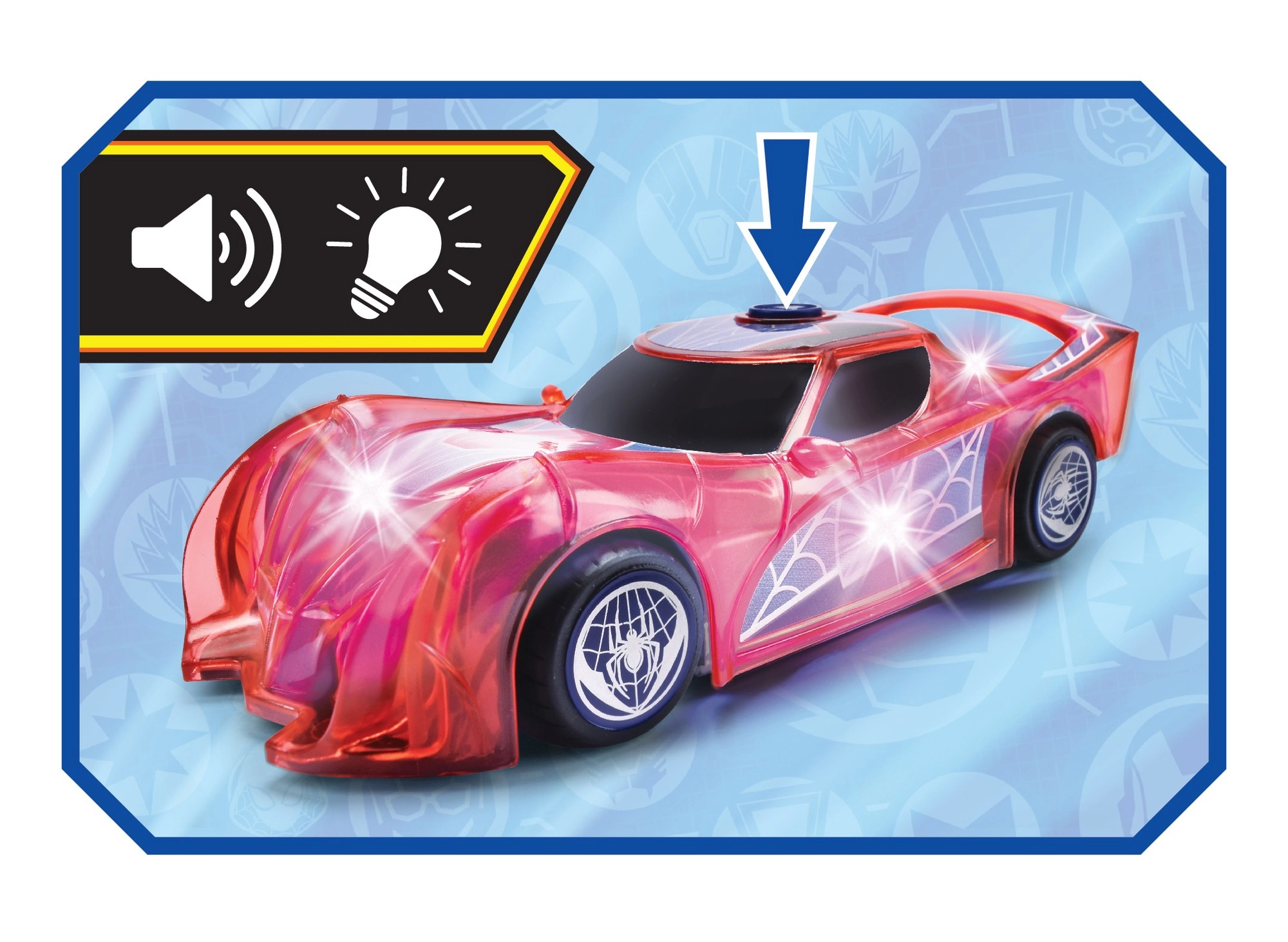 Karoséria s pavučinami, športové tvary a spojler. Ideálne na prehrávanie scén zo sveta MARVEL a zberateľské vystavenie.