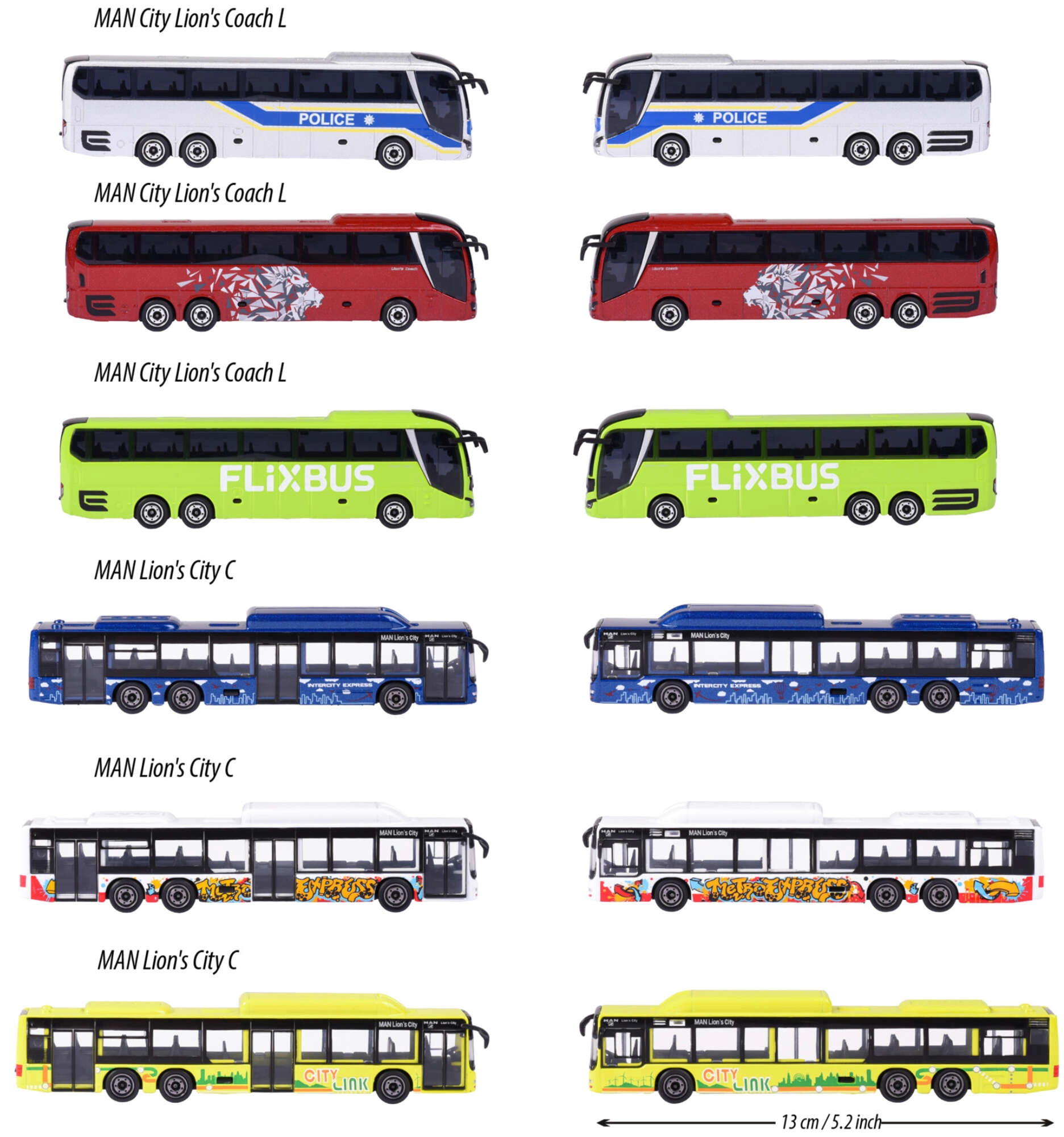 Realistický model mestského autobusu MAN Lion's City C od značky Majorette poteší malých aj veľkých fanúšikov dopravy. Kovové prevedenie s plastovými detailmi, pohyblivé kolesá a atraktívny biely dizajn s nápisom „metro express“ zaručujú odolnosť aj zábavu pri hre. Ideálne pre deti od 3 rokov aj ako zberateľský kúsok.