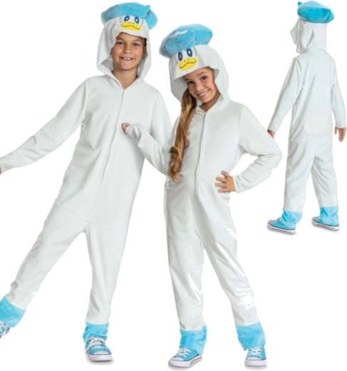 Detailná kapucňa s očami a žltým zobáčikom premení dieťa na obľúbeného vodného Pokémona behom chvíľky.