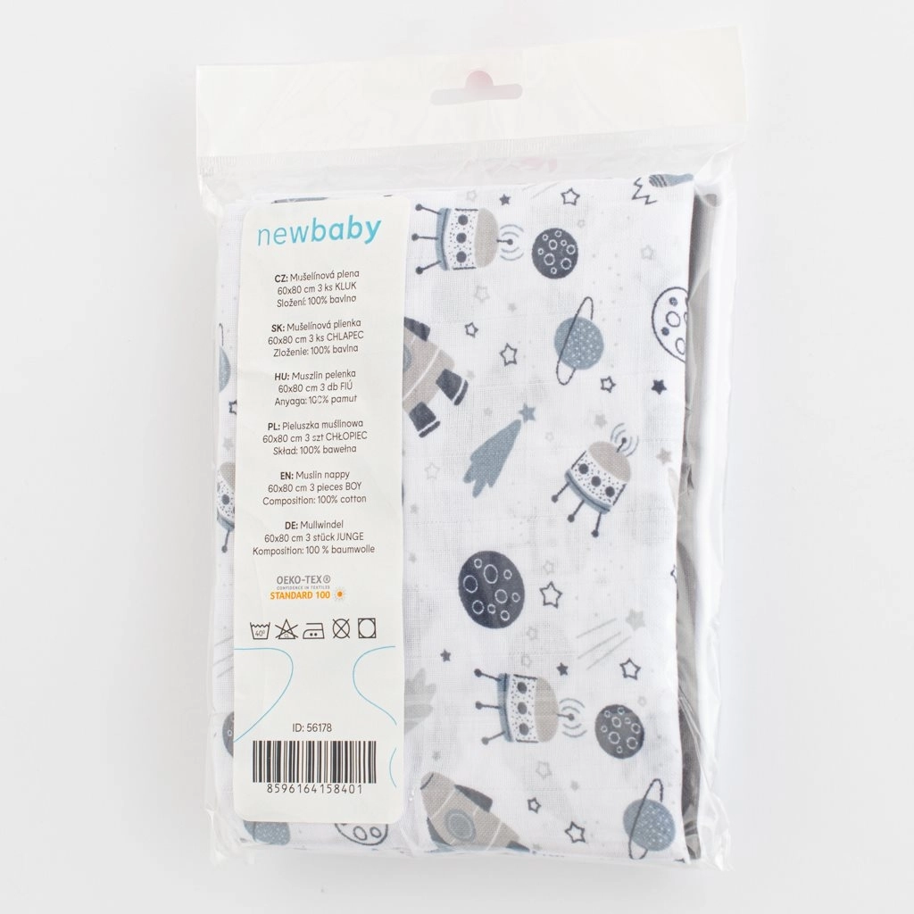 Plienky sú multifunkčné – poslúžia ako osušk y, podložky, zavinovačky alebo ľahká dečka do kočíka či postieľky. V sade nájdete dve jednofarebné a jednu s roztomilou potlačou vo farbách vhodných pre chlapcov.