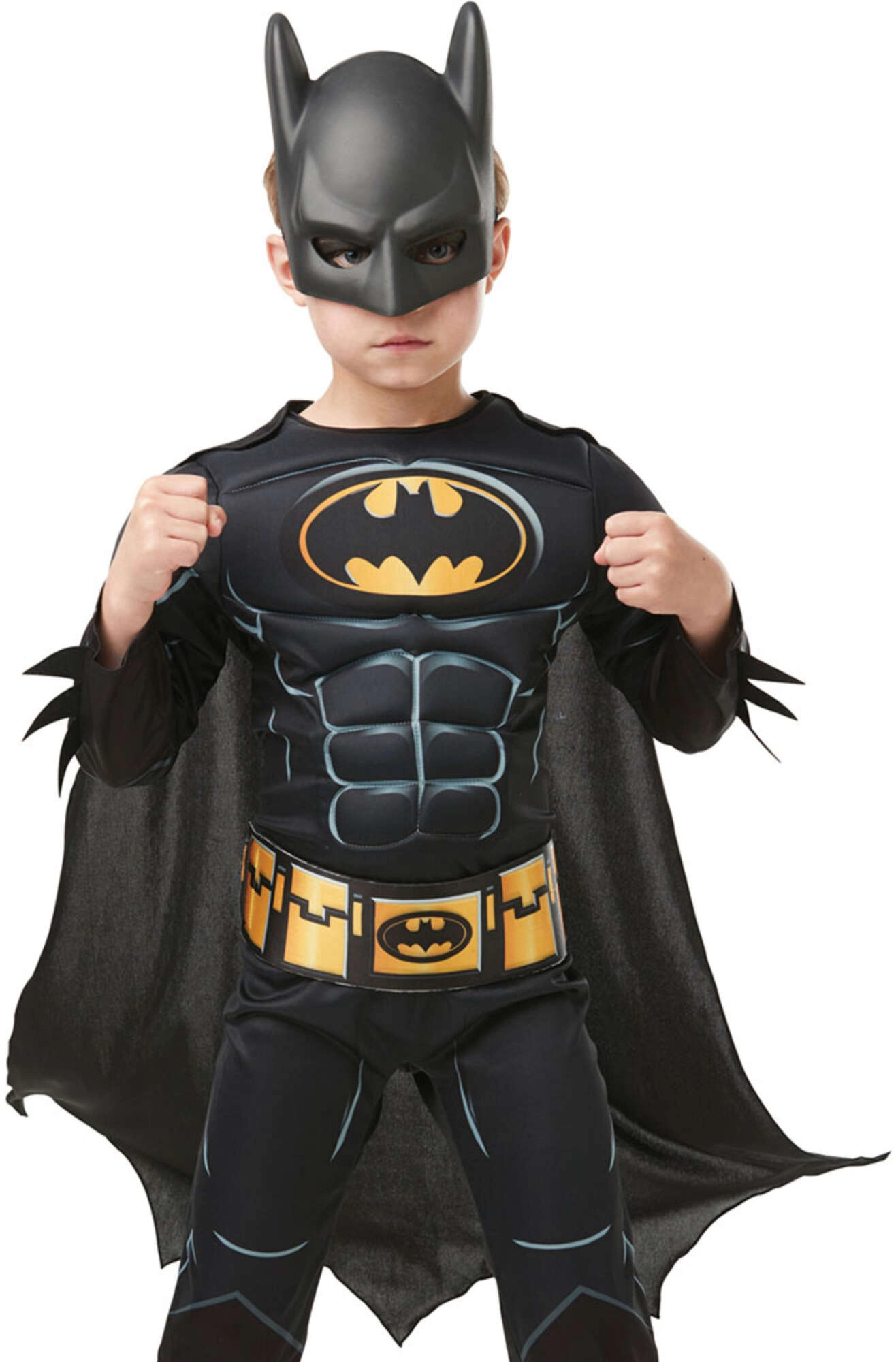Oficiálne licencovaný kostým DC COMICS BATMAN premení vaše dieťa na neohrozeného strážcu mesta. Ľahký a pohodlný materiál s výraznou potlačou svalového brnenia, žltým utility „opaskom“ a pripojeným plášťom zaistí efektný vzhľad aj komfort pri pohybe.