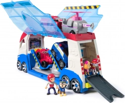 Objavte veľký patrolér z obľúbeného seriálu PAW Patrol od značky Spin Master – multifunkčný kamión, ktorý prepraví až 4 vozidlá, otvorí sa do hernej základne a ponúkne svetelné a zvukové efekty. V balení nájdete figúrky Rydera, Chasea, Marshalla a Skye aj ich vozidlá s voľnobežnými kolesami pre akčné záchranné misie.