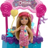 Objavte sladký svet s bábikou CHELSEA z radu BARBIE – farebný stánok s lízankami prináša veľa kreatívnej role-play zábavy. Súčasťou je bábika vysoká cca 15 cm v ružových šatôčkach s dúhou, stánok s pokladňou, rotujúci podstavec na tortu, lízankové dekorácie a drobné doplnky na predaj a servírovanie sladkostí. Ideálny darček pre deti od 3 rokov.