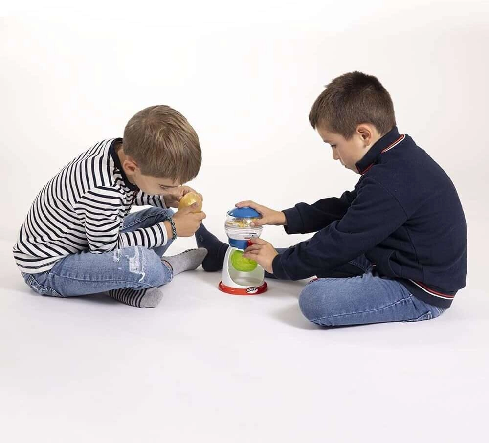 Priehľadný zásobník s výklopným viečkom a praktickým ovládaním uľahčuje plnenie loptičiek dekoráciami a bezpečné uzavretie bez neporiadku.
