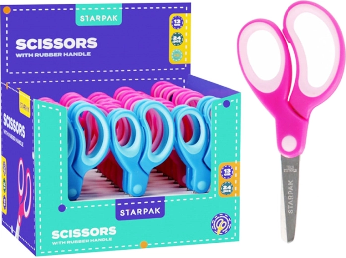 Tieto detské školské nožnice 13 cm sú navrhnuté na pohodlné a bezpečné použitie v škole aj pri domácom tvorení. Zaoblené špičky a kvalitné kovové čepele zaistia istý strih papiera a ľahkých materiálov, zatiaľ čo ergonomické rukoväte padnú deťom do ruky.