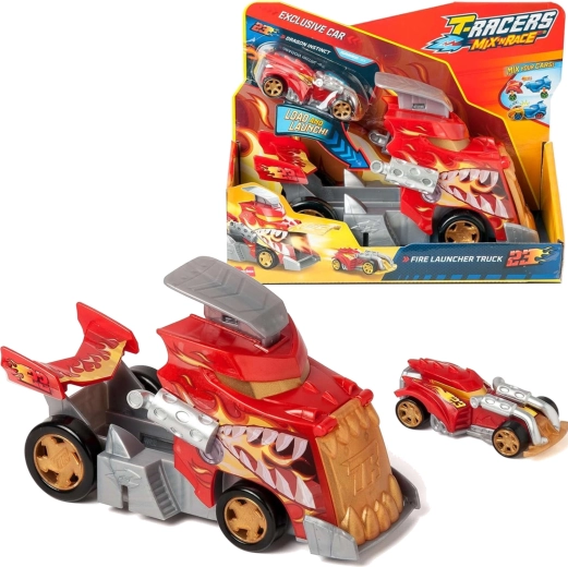 Set T-Racers Mix ’N Race Fire Launcher Truck prináša deťom dynamické preteky aj slobodu vlastnej tvorby. Nákladné auto v štýle draka prepraví vaše autíčka a vďaka integrovanej vystreľovacej rampe ich pošle vpred bleskovou rýchlosťou. Súčasťou je aj exkluzívny pretekársky voz, ktorého diely možno kombinovať s ďalšími modelmi rady Mix ’N Race.