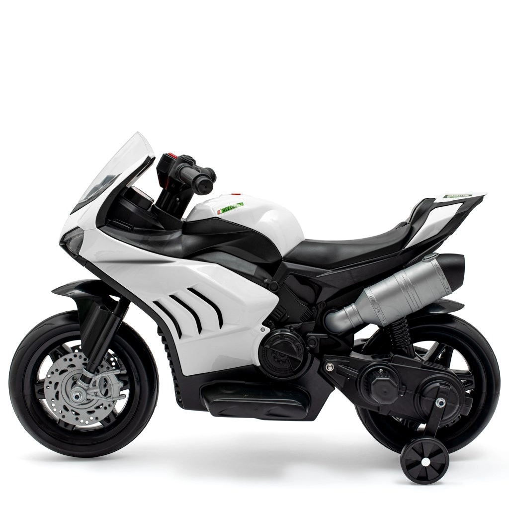 Doprajte svojmu dieťaťu radosť z jazdy na vlastnej elektrickej motorke. Detská motorka Supersport ponúka bezpečnú a stabilnú jazdu vďaka pomocným kolieskam, jednoduché ovládanie smeru vpred/vzad a zábavné zvukové efekty s prednahranou hudbou. Moderný dizajn v bielej farbe a kvalitné spracovanie zaistia hodiny zábavy pre malých jazdcov.