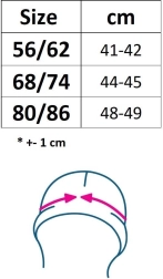 Čiapka je tvarovaná cez ušká a vďaka šnúrkam ju ľahko prispôsobíte tak, aby pevne držala aj pri pohybe, no zároveň netlačila. Certifikácia OEKO‑TEX STANDARD 100 garantuje bezpečnosť materiálu pre deti.