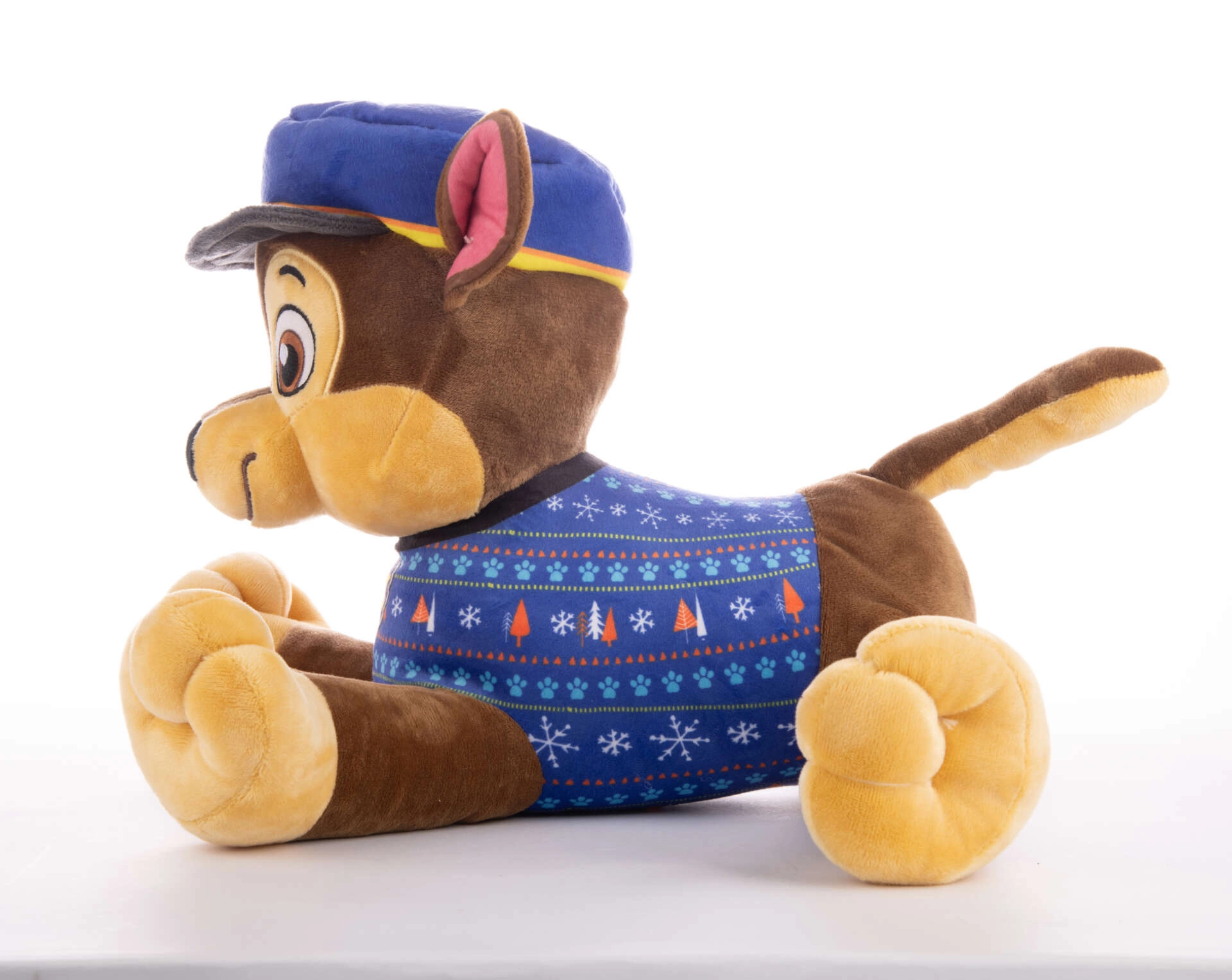 Plyšový pes policajt Chase je verne inšpirovaný seriálom Tlapková patrola. Vďaka veľkým vyšívaným očiam, modrej policajnej čiapke a svetru so snehovými vločkami a stromčekmi pôsobí maximálne autenticky. Ležiaca poloha s natiahnutými packami z neho robí ideálneho parťáka na objímanie, spanie aj hranie.