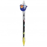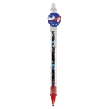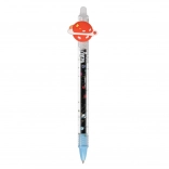 Transparentné telo s planétami, raketami a glitrami dopĺňa zábavný topper – z pera sa stáva štýlový doplnok do peračníka.