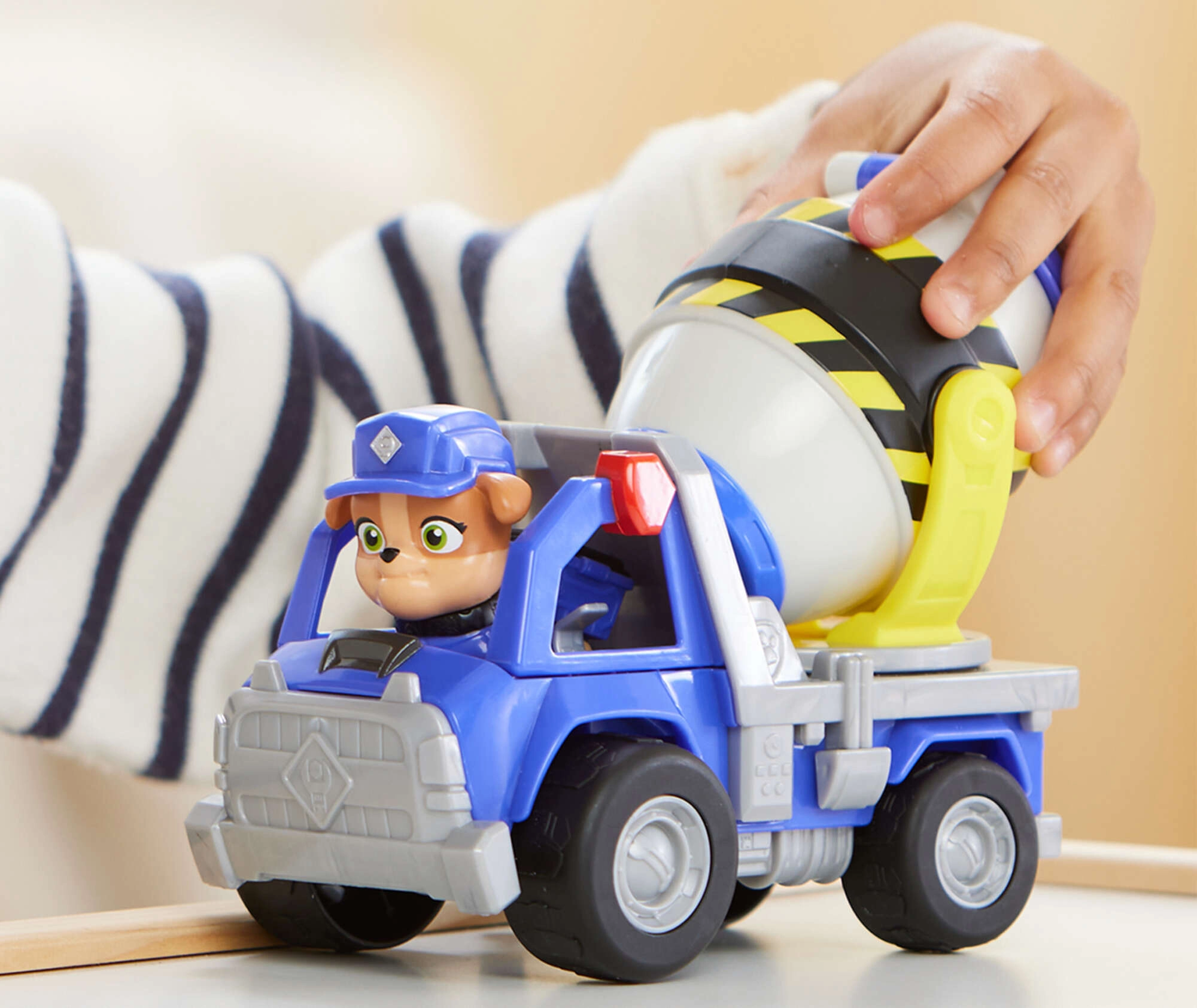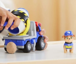 Vstúpte na stavbu s hrdinami PAW PATROL! Modrá miešačka s charakteristickými žlto‑čiernymi pruhmi na bubne a figúrkou psíka Mix je pripravená na akciu. Deti môžu ručne otáčať bubon a prevážať „betón“ na miesto, zatiaľ čo veľké odolné kolesá zaisťujú plynulú jazdu po rôznych povrchoch.