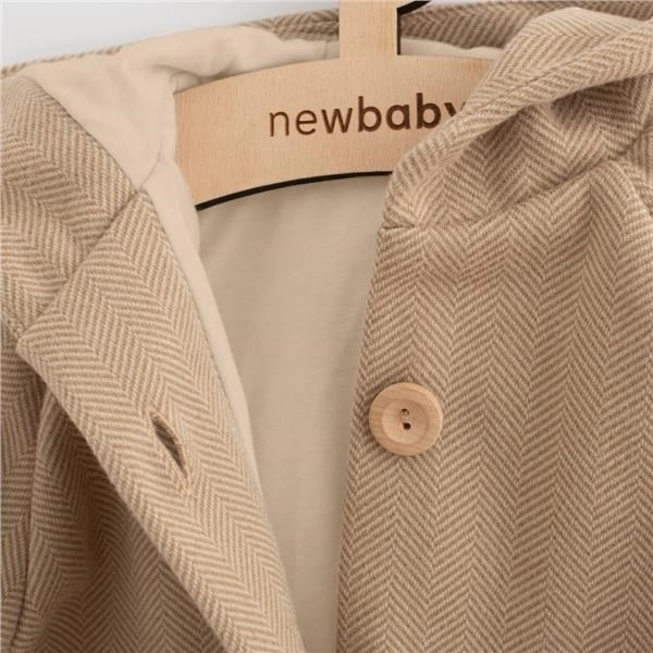 Detský kabátik s kapucňou New Baby UNI je navrhnutý pre voľný pohyb a komfortné nosenie počas chladnejších dní. Kapucňa chráni hlavu a uši pred vetrom, plná podšívka zo 100 % bavlny zaisťuje príjemný pocit na pokožke a priedušnosť. Elegantné drevené gombíky dodávajú kabátiku nadčasový vzhľad, ktorý ľahko skombinujete s každodennými outfitmi.