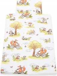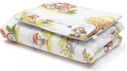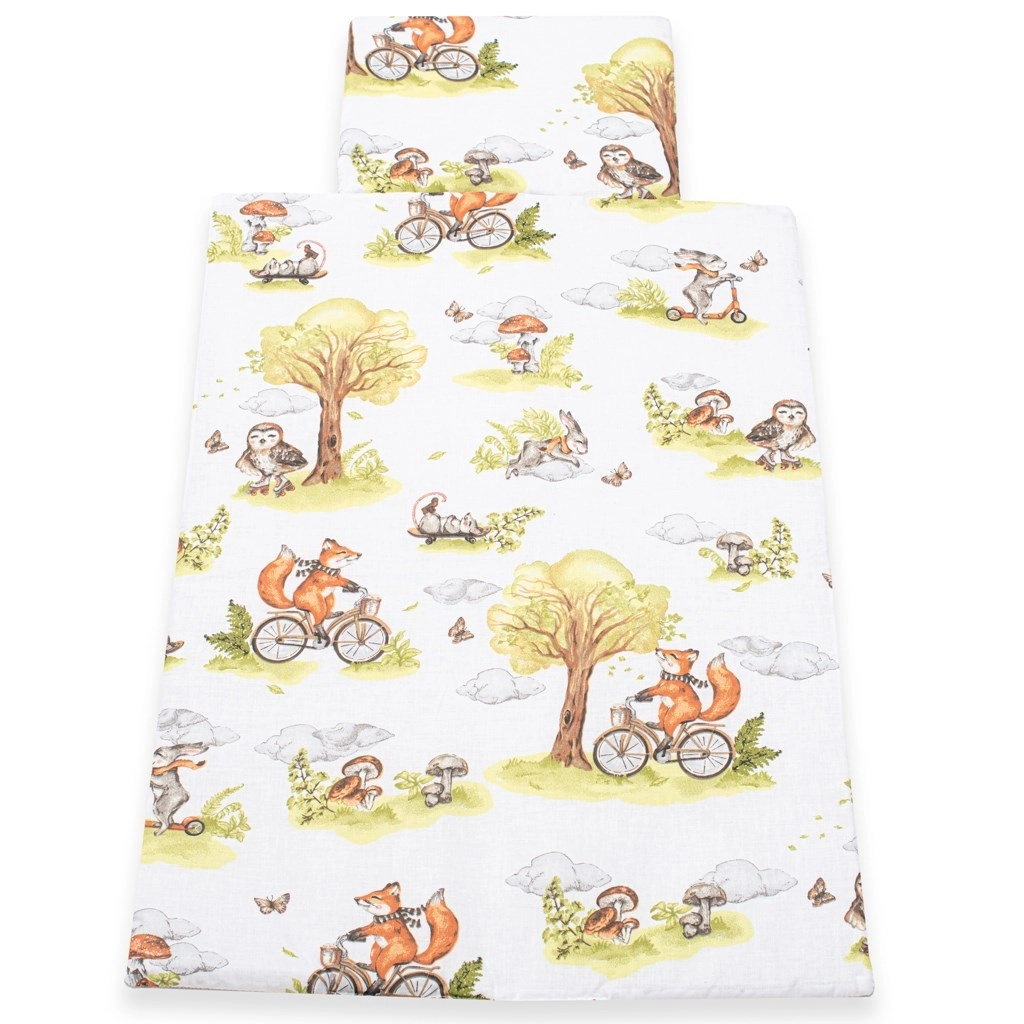 Táto obojstranná sada do kočíka spája praktickosť a nežný dizajn. Jedna strana je z jemnej 100% bavlny s upokojujúcou potlačou lesných zvieratiek, druhá z mäkkučkého velvetu, ktorý hreje, je príjemný na dotyk a drží tvar. Ideálna od narodenia: na spanie, do kočíka, autosedačky aj ako dečka na hranie.