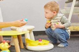 - pískanie pri stlačení, triedenie tvarov, tréning jemnej motoriky
