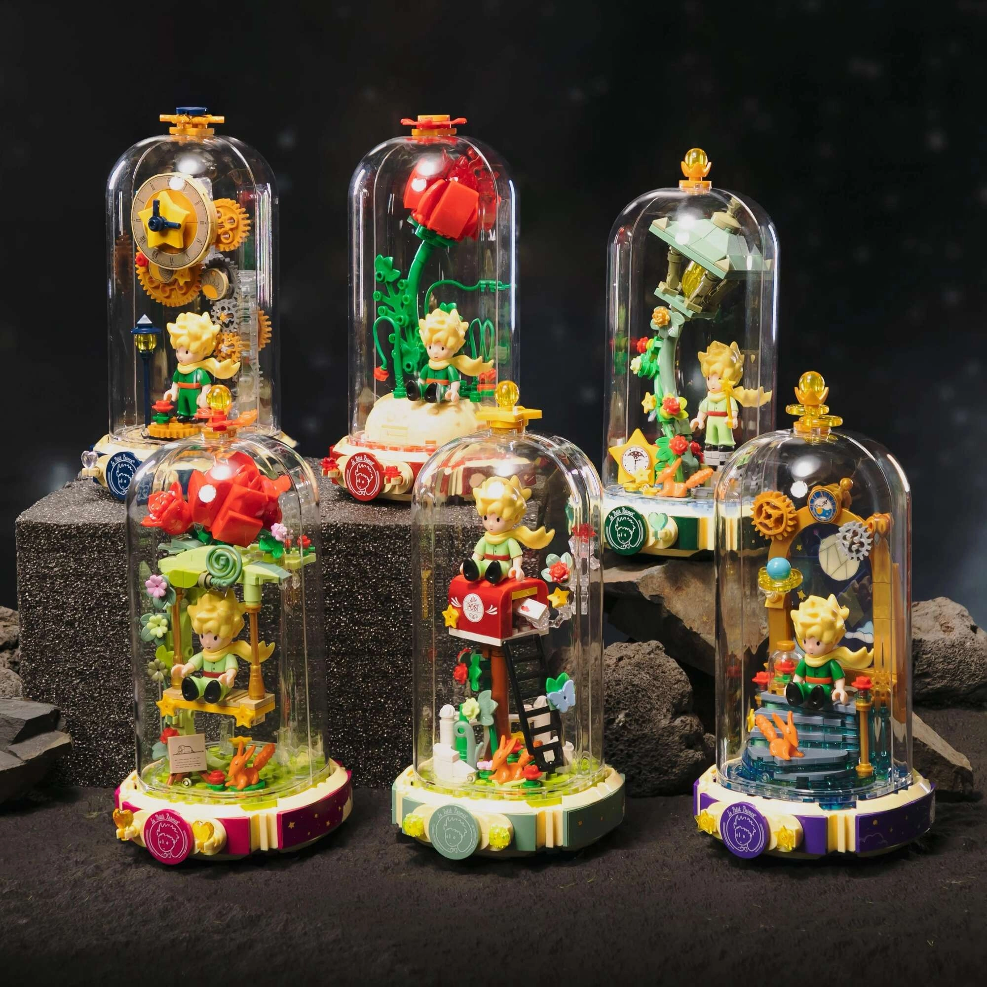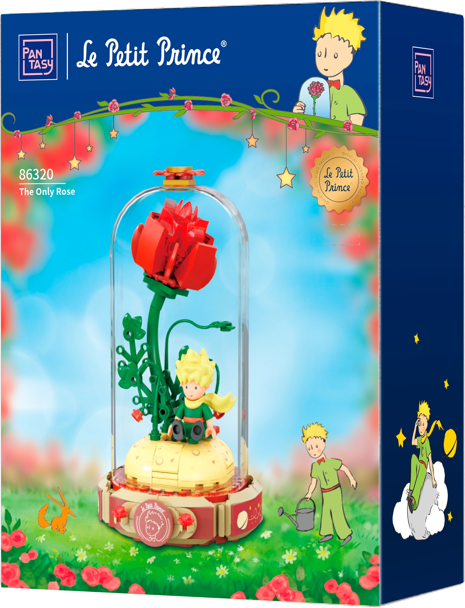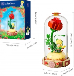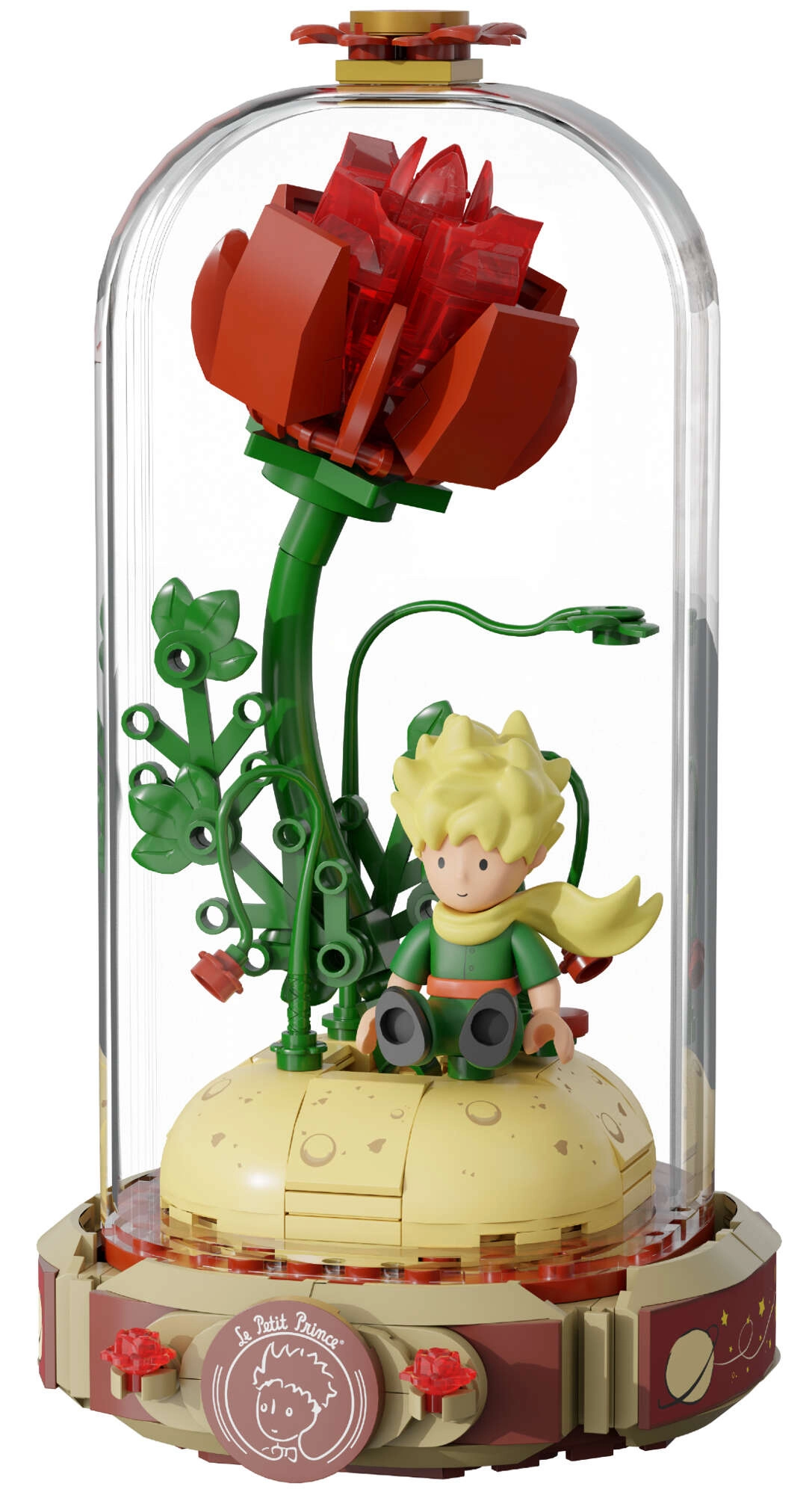 Postavte si symbolickú červenú ružu na podstavci v tvare otvorenej knihy s nápisom „Le Petit Prince“. Po boku stojí Malý princ a líška v typickej póze. Vyladené detaily stoniek, listov a kvetov dodávajú modelu harmóniu a eleganciu – skvelý kúsok na výstavku aj tvorivú zábavu.