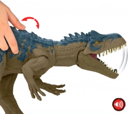 Nechýba ani funkcia útočného pohybu – stlačením tlačidla sa spustí akcia hlavy a čeľustí, sprevádzaná realistickými zvukmi dinosaura, ktoré umocňujú hru. V tele je ukrytý vysúvací skenovací štítok, ktorého naskenovaním v aplikácii JURASSIC WORLD odomknete digitálny obsah a rozšírite svoje dobrodružstvo.