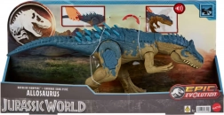 Interaktívny Allosaurus z JURASSIC WORLD prináša do hry napätie aj realistický vzhľad. Detailná textúra kože, výrazné zuby a oči, dynamická silueta a presné proporcie vytvárajú verný dojem pravekého predátora. Vďaka pohyblivým končatinám, krku, chvostu a čeľustiam možno figúrku ľahko nastavovať do akčných pozícií.