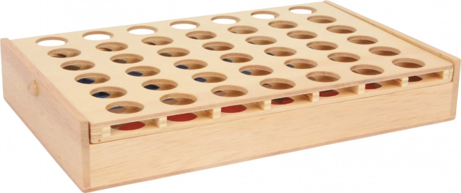 Táto drevená hra je ideálna na cesty vďaka svojmu kompaktnému dizajnu. Hráči striedavo vhazujú červené a modré disky do zvislých stĺpcov, pričom cieľom je vytvoriť rad štyroch diskov rovnakej farby. Vďaka kvalitnému drevenému prevedeniu má hra nielen estetický vzhľad, ale je aj odolná a dlhodobo trvácna.