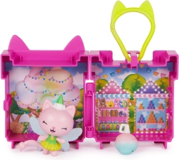Tento prenosný minibox v tvare mačacieho púzdra poteší všetkých fanúšikov seriálu Gabby’s Dollhouse. Vo vnútri nájdete farebné pozadie karnevalovej/rozprávkovej scény, roztomilú figúrku Kitty Fairy a tematické doplnky. Vďaka klipu a madlu si deti môžu vziať svoju mini herňu kamkoľvek so sebou – pripnúť ju na batoh alebo nosiť v ruke.