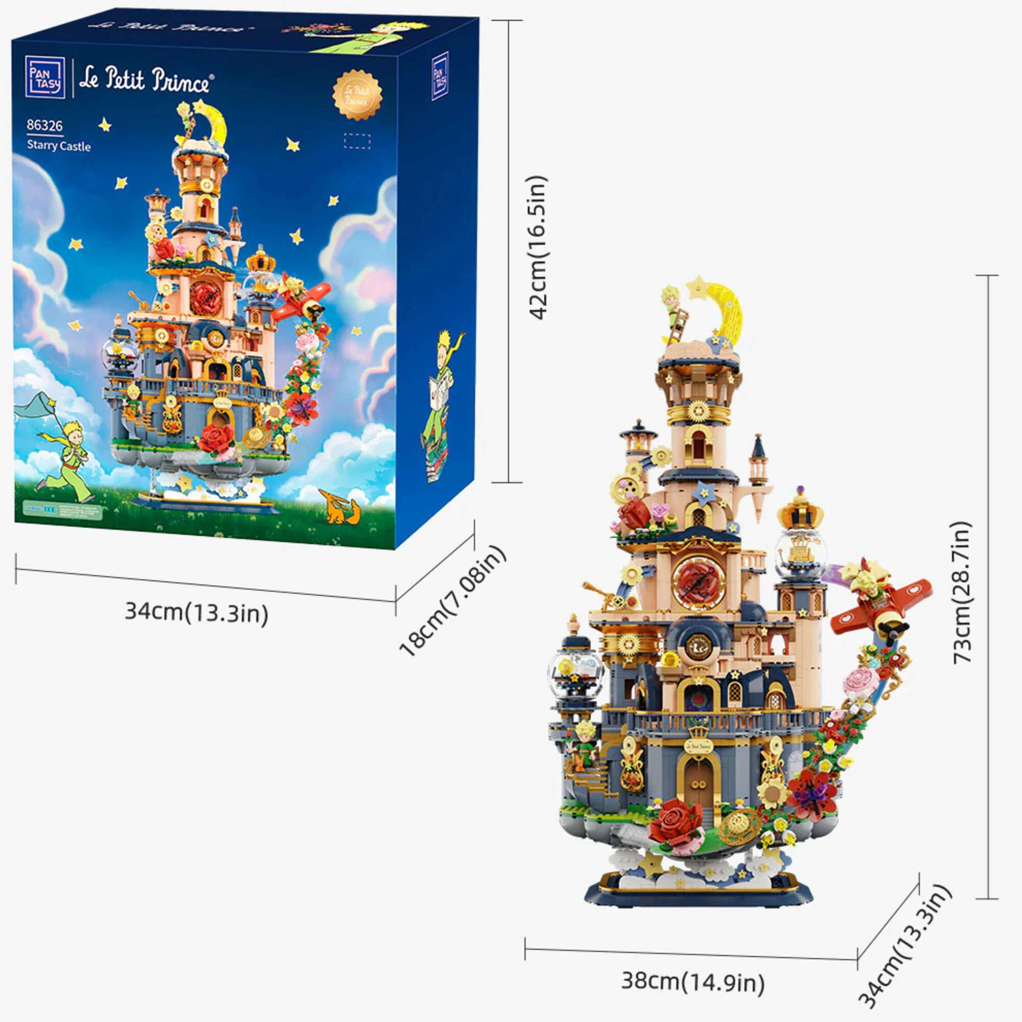 Vstúpte do poetického sveta Le Petit Prince s okúzľujúcim modelom zámku, ktorý sa akoby vznáša medzi hviezdami. Prepracované veže, balkóny, kvetinové motívy a viditeľné ozubené prvky vytvárajú pôsobivú scénériu, ktorá vynikne na každej poličke. Stavebnica sa hodí pre tvorivých staviteľov aj vášnivých zberateľov – od prvého dielika až po posledný detail.