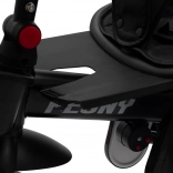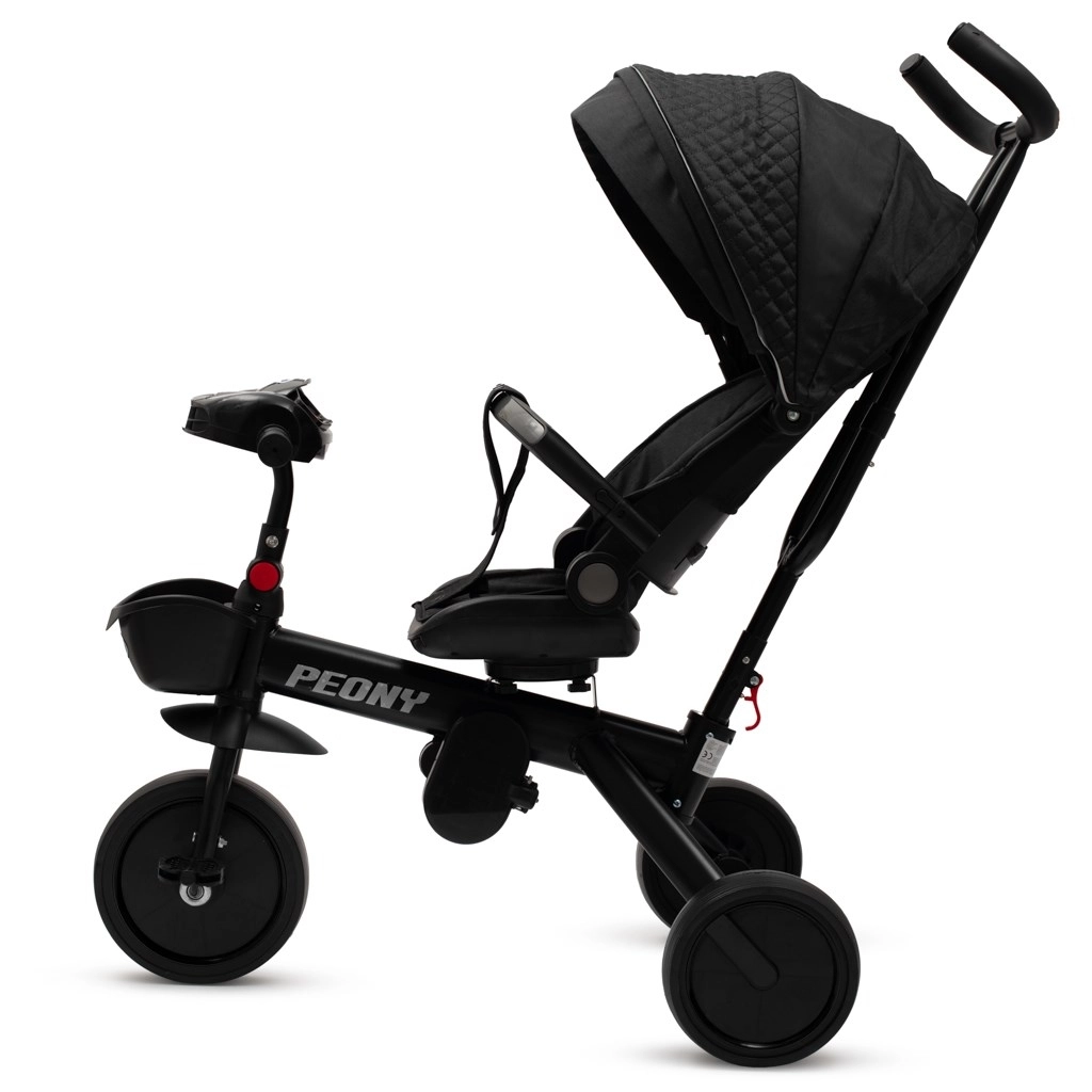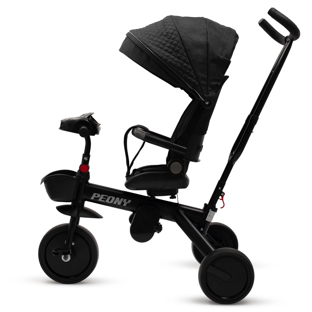 Jazdu spríjemní otočné a skladacie sedadlo pre flexibilnú polohu dieťaťa, dvojstupňovo nastaviteľná rukoväť pre pohodlné vedenie a kolesá z odolnej EVA peny, ktoré sú tiché a nevyžadujú údržbu. Praktickú stránku zabezpečuje veľký zadný kôš aj predný košík na drobnosti, zatiaľ čo svetlá v štýle športového auta nadchnú malých vodičov.