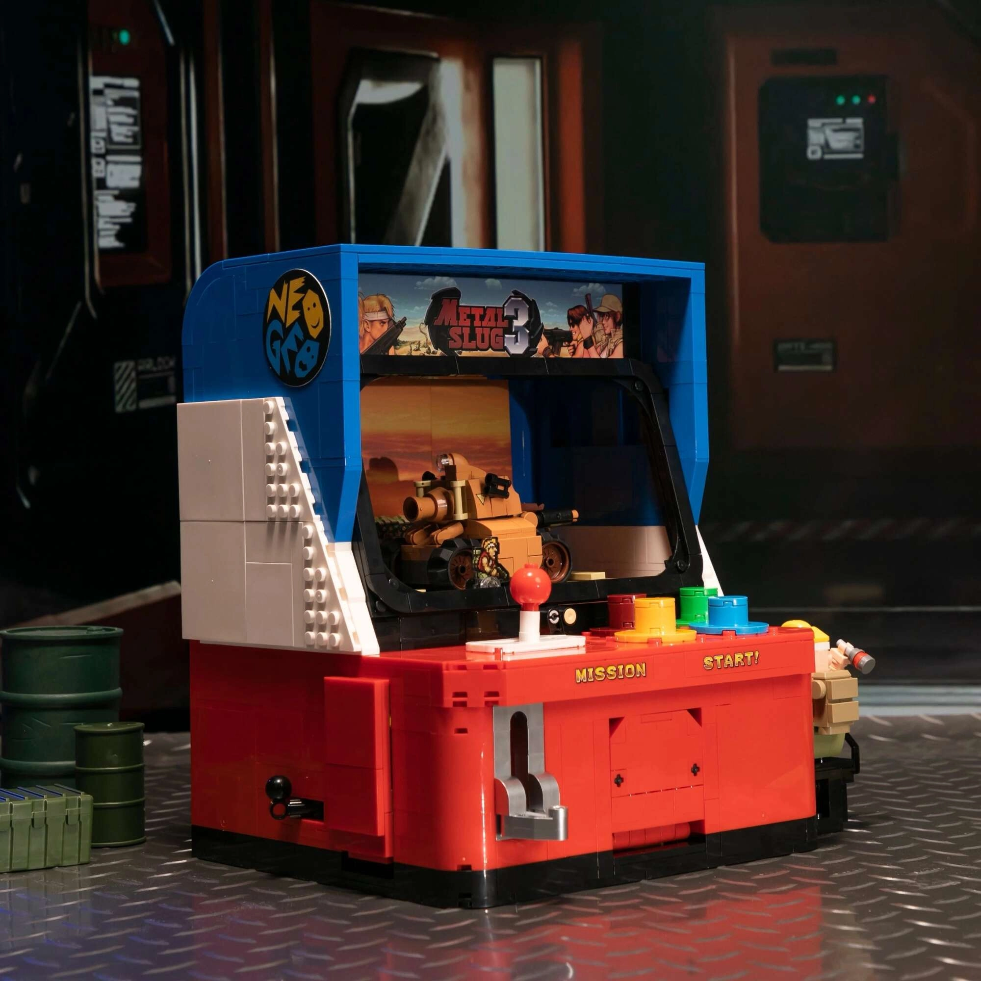 Táto prémiová stavebnica je poctou klasickým arkádovým automatom a prináša retro vzhľad v modernom konštrukčnom spracovaní. Robustná silueta v kovových odtieňoch sivej verne odkazuje na estetiku série METAL SLUG a po zostavení sa stane výrazným kúskom každej hernej či zberateľskej vitríny.