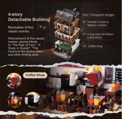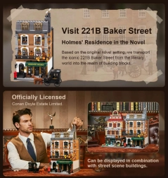 Stavebnica je vyrobená z kvalitného ABS plastu, ponúka premyslenú stavbu a po dokončení sa stane pôsobivou dekoráciou pre domov či kanceláriu. Je skvelá pre skúsených staviteľov aj začiatočníkov a predstavuje ideálny darček pre fanúšikov SHERLOCK HOLMES a zberateľov.
