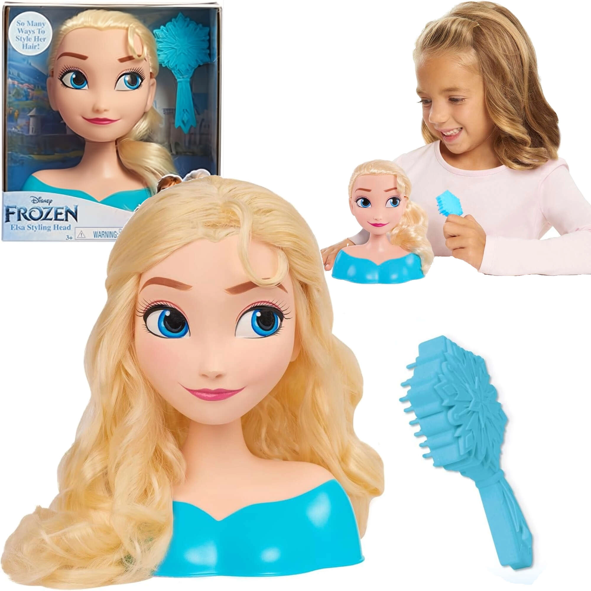 Objavte kúzelnú hlavu na česanie a styling s postavou DISNEY FROZEN Elsa. Dlhé, lesklé blond vlasy, veľké modré oči a stabilný bustový podstavec pozývajú ku kreatívnej hre. Súčasťou je kefka v tvare snehovej vločky na jednoduché česanie a tvorbu účesov. Ideálna hračka pre deti od 3 rokov, ktorá rozvíja jemnú motoriku, predstavivosť a zmysel pre estetiku.