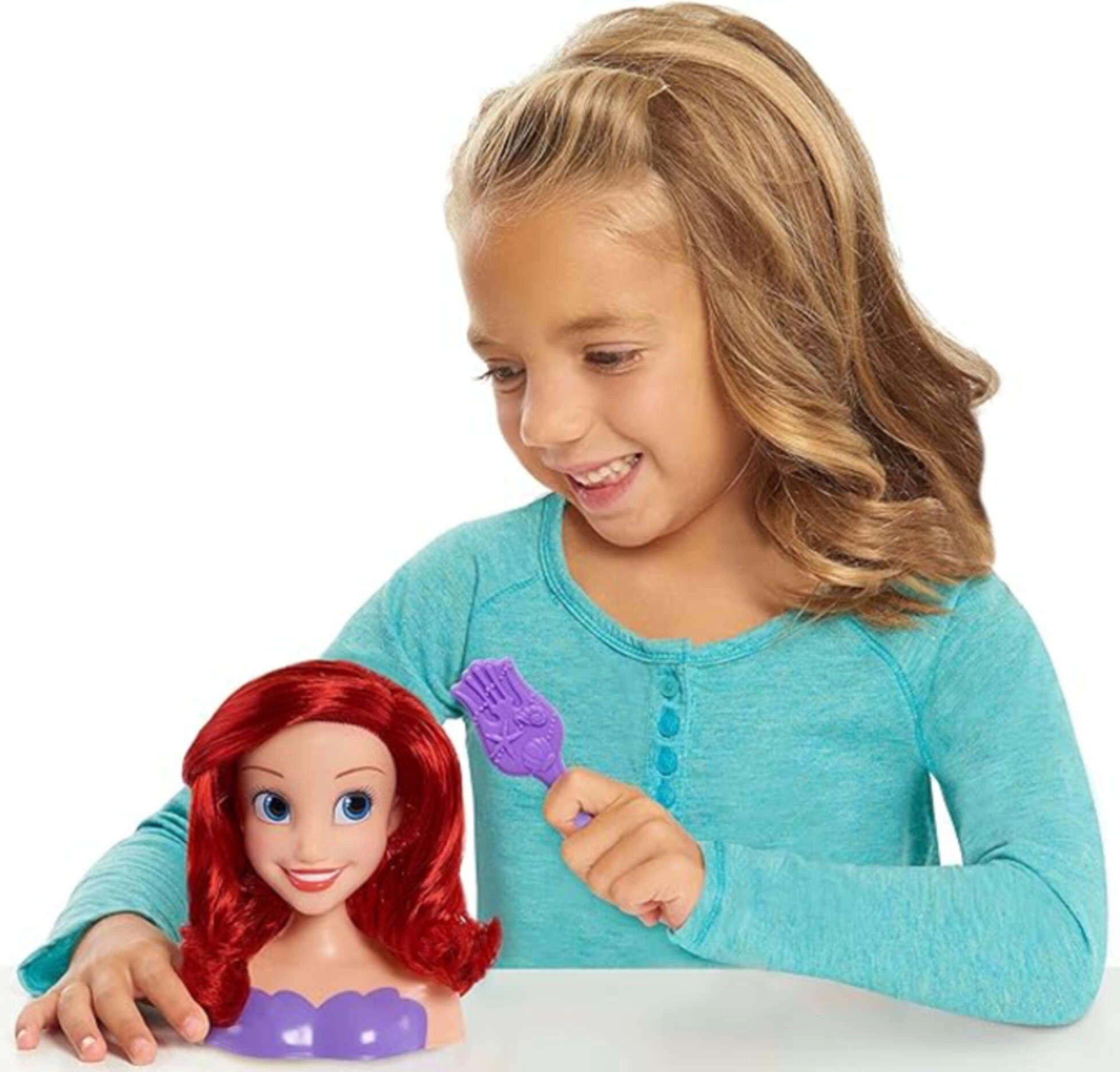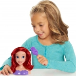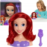 Stylingová hlava Ariel z rozprávky DISNEY Malá morská víla poteší všetky malé kaderníčky. Má dlhé, lesklé ryšavé vlasy, ktoré možno ľahko česať a upravovať. Súčasťou je fialová kefa na tvorbu nekonečných účesov. Hračka rozvíja kreativitu, jemnú motoriku a zmysel pre estetiku.